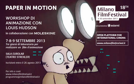 Tre giorni di divertimento e libertà creativa dove i partecipanti possono condividere e imparare le tecniche d’animazione più svariate. Il workshop è dedicato ad animatori e studenti di animazione (massimo 10 partecipanti). Iscrizioni aperte fino al 26 agosto.
