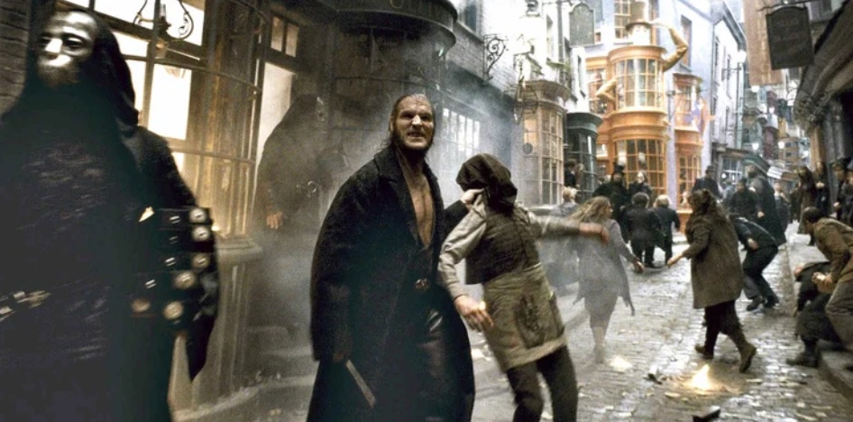 Si tratta di un avvenimento che non accade nei libri. E questa decisione, per quanto sia elettrizzante da guardare e aggiunge azione al film, sembra non combaciare con il fatto che all’inizio di Harry Potter e i Doni della Morte Parte 1, la Tana è perfettamente in piedi e integra, è anzi location nuziale per Billy e Fleur.