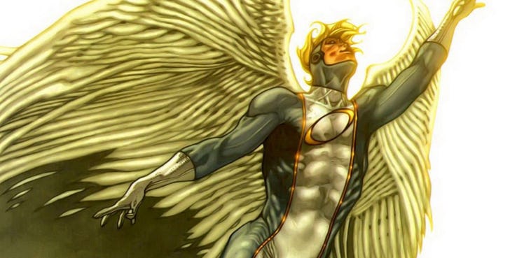 Personaggio dei fumetti creato da Stan Lee e Jack Kirby, Angel è un Mutante che nel corso della sua storia editoriale ha assunto diversi nomi in codice tra cui Angelo Vendicativo, Angelo, Morte ed Arcangelo. Dopo aver perso i suoi poteri per vivere una vita più “normale” è diventato Blackwing con i New Warriors.