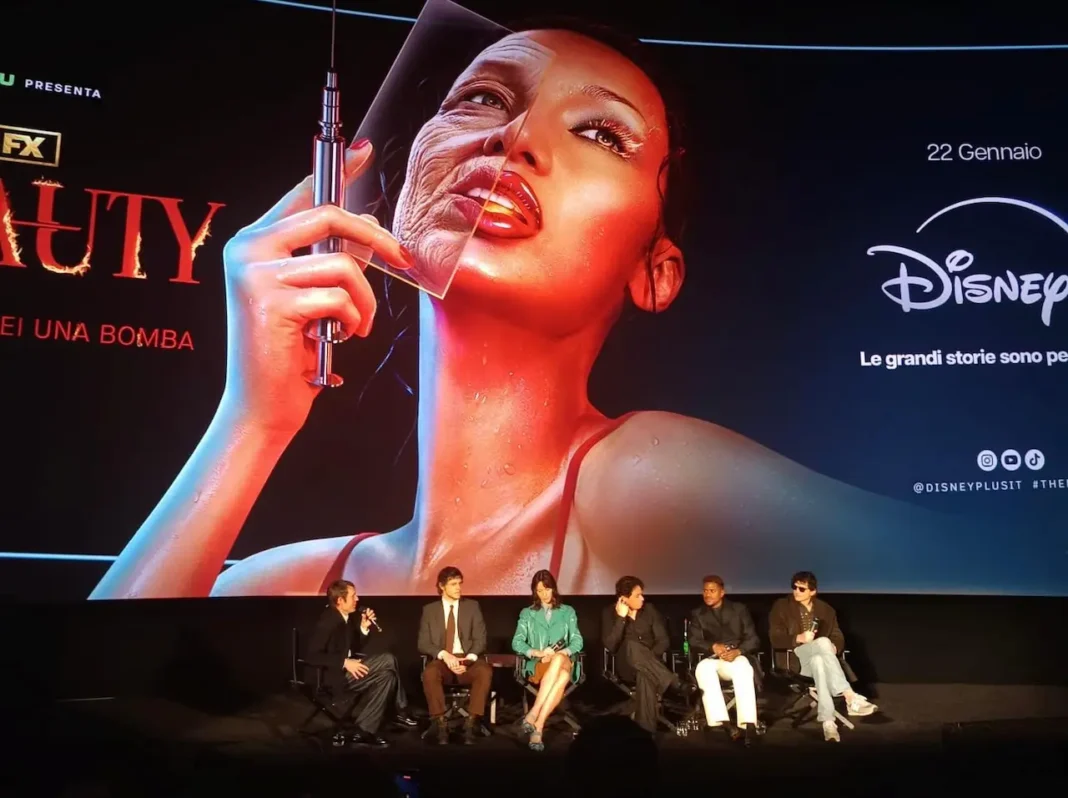 Nella cornice del The Space Cinema Moderno di Roma si è tenuta oggi la conferenza stampa di presentazione di The Beauty, la nuova serie scritta e prodotta da Ryan Murphy in collaborazione con Matthew Hodgson, disponibile su Disney+ dal 22 gennaio. Davanti a una platea di giornalisti e addetti ai lavori, il cast – Evan Peters, Rebecca Hall, Ashton Kutcher, Anthony Ramos e Jeremy Pope – ha raccontato l’esperienza italiana, la preparazione ai ruoli e le riflessioni profonde che la serie solleva sul tema della bellezza, oggi più che mai al centro di un dibattito culturale e sociale.